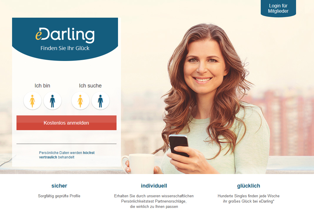 Über 1 Mio. Singles haben sich schon für eDarling.de entschieden und überlassen die Liebe nicht mehr dem Zufall. - Tun Sie es auch nicht! Melden Sie sich an und testen Sie eDarling!